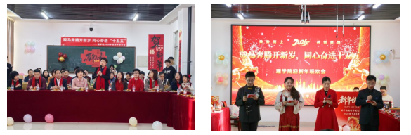 除了精彩的文艺表演外,联欢会还设置了多个趣味横生的游戏环节。夹纸运杯、猜词游戏、新年冲刺团队接力赛等游戏不仅考验了老师们的团队协作能力和默契度,还让大家在欢声笑语中增进了彼此之间的友谊。